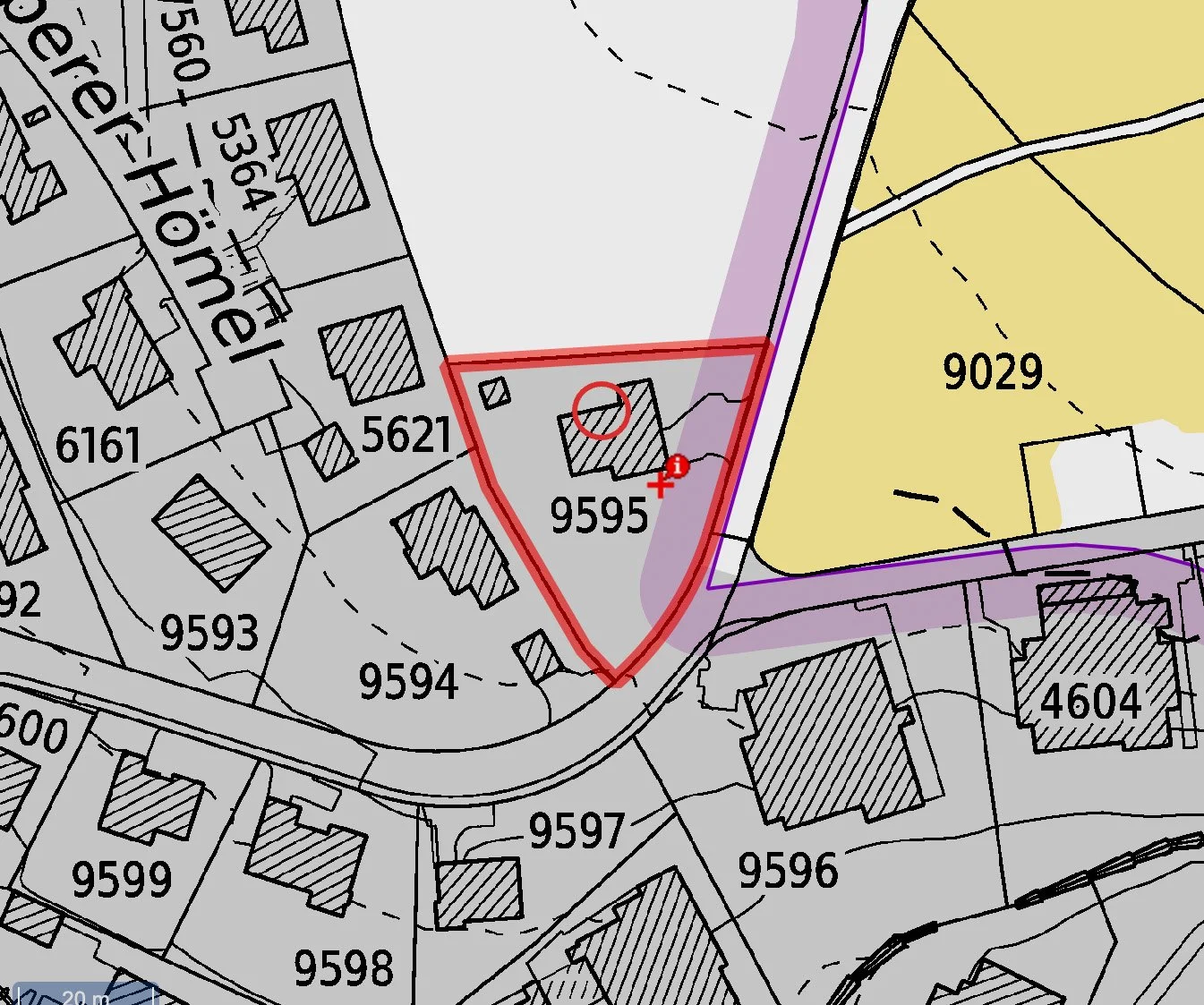 Die Parzelle 9595 liegt am Rande der Bauzone W1.4. Richtung Norden ist Reserveland eingetragen, weisse Zone. Die gelb markierte Zone liegt ganz ausserhalb der Bauzone. Zonenplan und die Bau- und Zonenordnung der Gemeinde Wald ZH können Sie hier herunterladen.